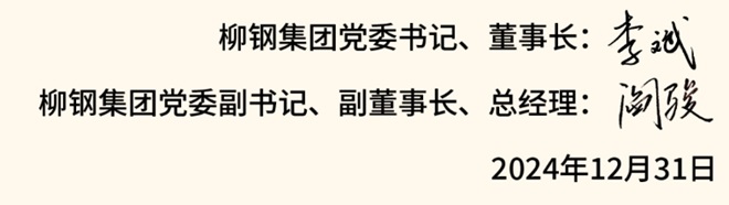 新的一年來臨之際,柳鋼集團黨委書記、董事長李斌,黨委副書記、副董事長、總經理閻駿發表了二〇二五年新年獻詞。全文如下: