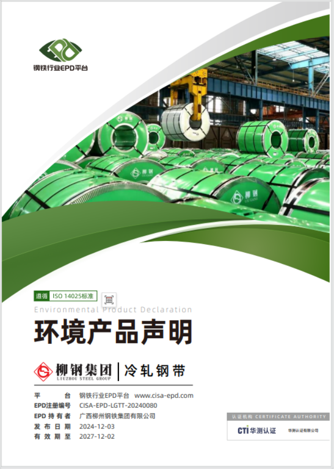 2024年12月,廣西柳州鋼鐵集團有限公司(以下簡稱柳鋼集團)首次在中國鋼鐵行業EPD平台成功發布柳鋼集團冷軋鋼帶產品、柳鋼股份熱軋鋼筋產品、廣西鋼鐵冷軋鋼帶和熱軋鋼筋產品共計4份環境產品聲明EPD報告,成為廣西首家發布環境產品聲明EPD報告的鋼鐵企業。