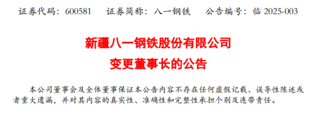 1月16日,新疆八一鋼鐵股份有限公司發布了《新疆八一鋼鐵股份有限公司 變更董事長的公告》以下簡稱《公告》。