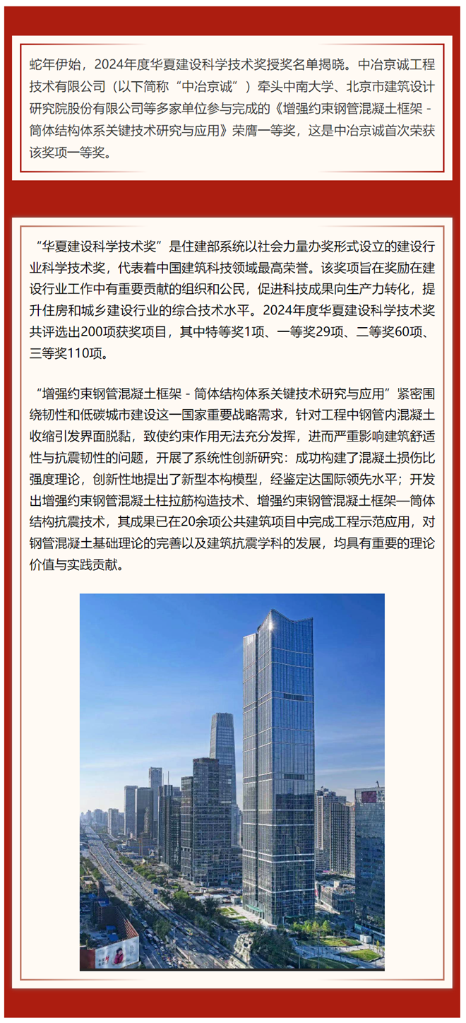 中冶京誠榮膺2024年華夏建設科學技術一等獎