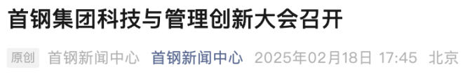 2月18日,首鋼新聞中心發布文章《首鋼集團科技與管理創新大會召開》。報道顯示,鄒立賓已成為首鋼集團領導班子成員之一。