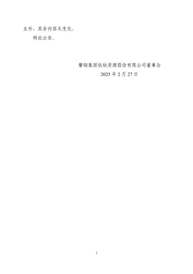 2月27日,釩鈦股份發布《關於完成工商變更登記的公告》。
