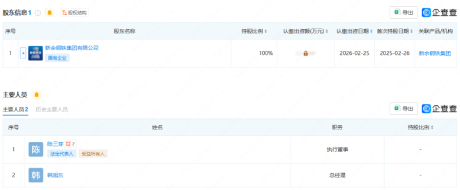 企查查股權穿透顯示,該公司由新餘鋼鐵集團有限公司全資持股,後者由中國寶武鋼鐵集團有限公司、江西省國有資本運營控股集團有限公司共同持股。