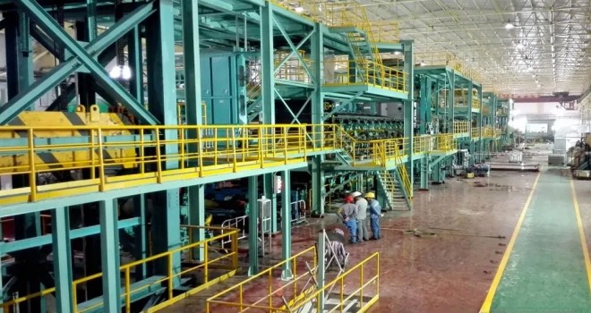 山東華豐1420酸軋聯合機組:機電液總承包模式完成的典範工程,以1500m/min最大軋製速度穩定運行,月產薄規格鍍鋅基板超12萬噸,創同類型國產機組產能新紀錄,為國產酸軋聯合技術最高水平。