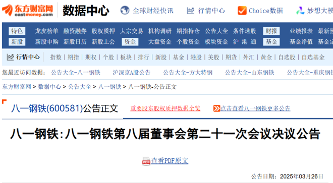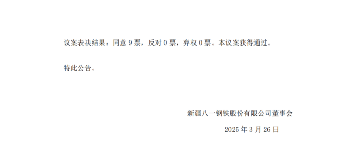 3月26日,八一鋼鐵發布了第八屆董事會第二十一次會議決議公告。