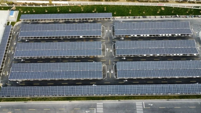麵對《國民經濟和社會發展第十四個五年規劃和2035年遠景目標綱要》提(ti)出(chu)的(de)碳(tan)達(da)峰(feng)目(mu)標(biao),作(zuo)為(wei)陝(shan)西(xi)省(sheng)的(de)重(zhong)點(dian)生(sheng)產(chan)企(qi)業(ye),虹(hong)陽(yang)顯(xian)示(shi)將(jiang)綠(lv)色(se)低(di)碳(tan)發(fa)展(zhan)作(zuo)為(wei)企(qi)業(ye)轉(zhuan)型(xing)的(de)核(he)心(xin)戰(zhan)略(lve),積(ji)極(ji)響(xiang)應(ying)政(zheng)策(ce)號(hao)召(zhao)利(li)用(yong)廠(chang)區(qu)閑(xian)置(zhi)屋(wu)頂(ding)和(he)停(ting)車(che)位(wei)區(qu)域(yu),由(you)思(si)安(an)新(xin)能(neng)源(yuan)股(gu)份(fen)有(you)限(xian)公(gong)司(si)投(tou)資(zi),隆(long)基(ji)森(sen)特(te)負(fu)責(ze)EPC建設分布式光伏電站,以實際行動踐行綠色低碳生產理念。