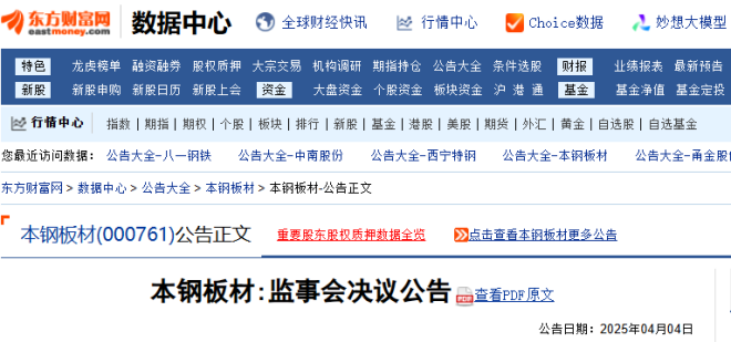 4月4日,本鋼板材發布了《董事會決議公告》。