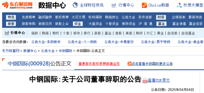 4月3日,中鋼國際工程技術股份有限公司發布了《關於公司董事辭職的公告》。
