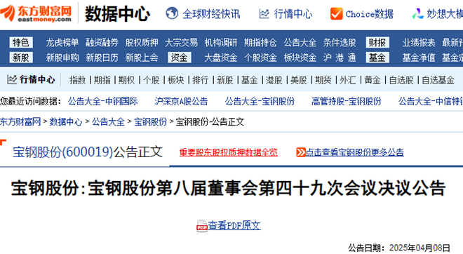 4月8日,寶鋼股份發布了第八屆董事會第四十九次會議決議公告。