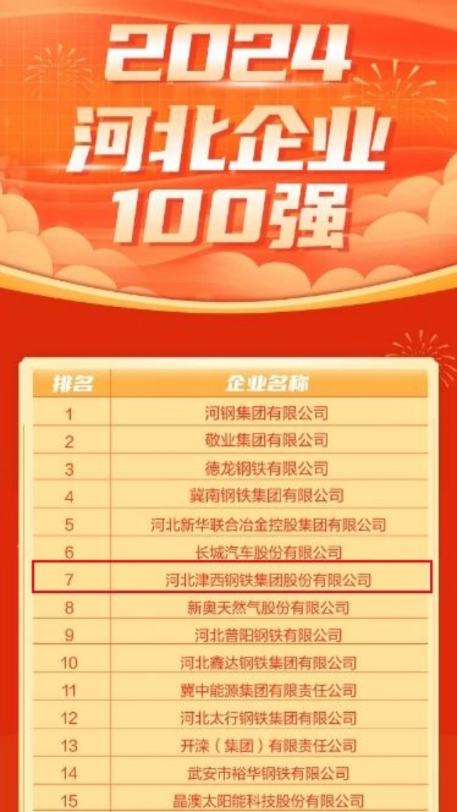 2024年河北省百強企業榜、製造業和服務業榜,津西股份、津西國貿上榜