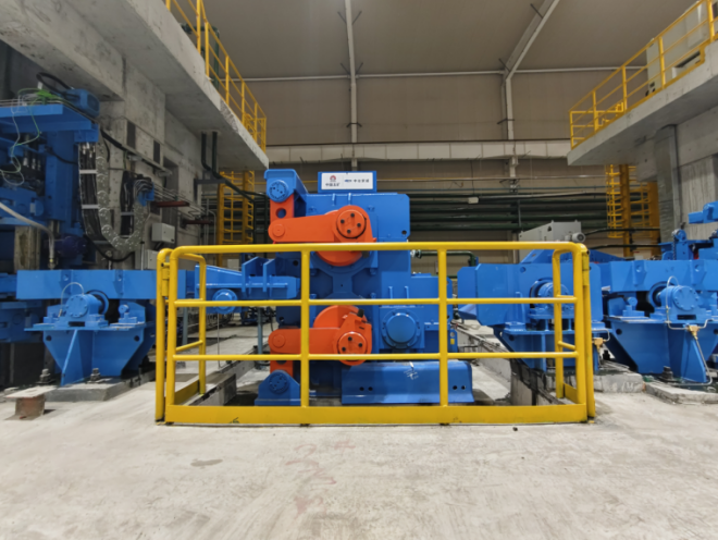 橫移可逆開坯機:憑借先進的設計理念和製造工藝,該裝備成為鈦合金加工領域的核心裝備。橫移式可逆開坯機采用軋線固定、軋機橫移的方式,特別適用於鈦合金軋製,采用全自動柔性匹配技術,實現橫移、拋鋼、翻鋼、對中以及軋件直線供給等多項功能,縮短道次間歇時間,優化速度控製,防止劃傷。