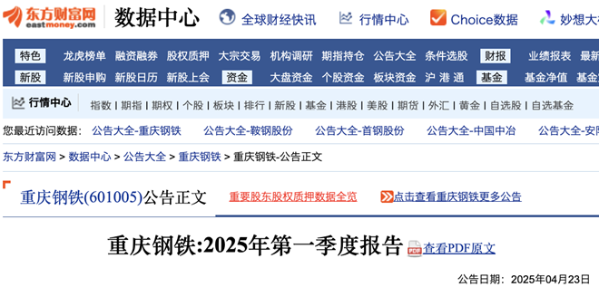 4月23日,重慶鋼鐵公布《2025年第一季度報告》。