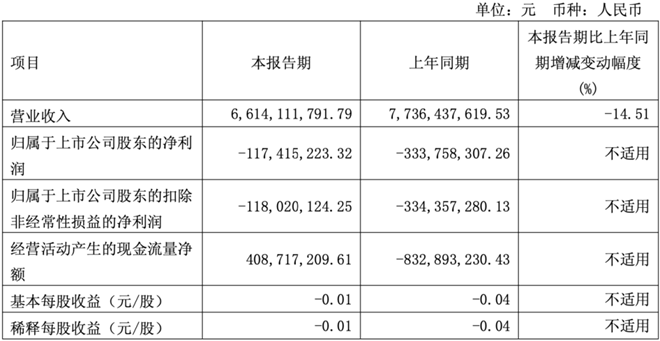 1-3月,重慶鋼鐵股份有限公司(以下簡稱“該公司”)實現營業收入66.14億元,同比減少14.51%;歸母淨利潤-1.17億元,較上年同期的-3.34億元大幅減虧;扣非後淨利潤-1.18億元,同比亦大幅減虧,每股收益-0.01元。報告期內,該公司經營活動產生的現金流量淨額為4.09億元,較上期的-8.33億元顯著改善。