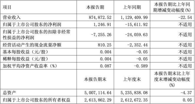 報告顯示,該公司一季度實現營業總收入87.49億元,同比下降22.54%;歸母淨利潤1246.91萬元,同比扭虧;經營活動產生的現金流量淨額為810.25萬元,上年同期為-2352.44萬元;報告期內,新鋼股份基本每股收益為0.004元,加權平均淨資產收益率為0.09%。