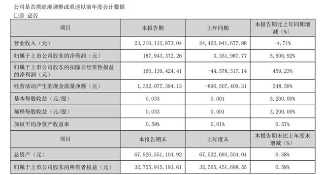 4月27日,太鋼不鏽(000825.SZ)發布2025年一季度報告,報告顯示,2025年一季度公司實現營業收入233.1億元,同比下降4.71%;歸屬於上市公司股東的淨利潤1.88億元,同比增長5506.92%;歸屬於上市公司股東的扣除非經常性損益的淨利潤1.6億元。