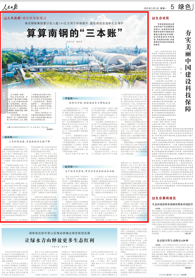 綠色轉型新看點!《人民日報》大篇幅報道南鋼“三本賬”
