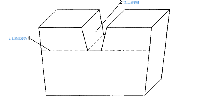 將jiang預yu製zhi過guo梁liang的de上shang部bu中zhong間jian設she計ji成cheng一yi缺que口kou結jie構gou,並bing在zai預yu製zhi件jian烘hong烤kao以yi後hou將jiang此ci缺que口kou用yong澆jiao注zhu料liao或huo炮pao泥ni類lei耐nai火huo材cai料liao填tian充chong起qi來lai。缺que口kou的de下xia沿yan最zui低di位wei置zhi設she計ji在zai接jie近jin於yu主zhu鐵tie溝gou中zhong的de液ye麵mian線xian位wei置zhi。缺que口kou可ke以yi設she計ji成cheng倒dao梯ti形xing,還hai可ke以yi設she計ji成cheng矩ju形xing或huoU形,如下圖所示: