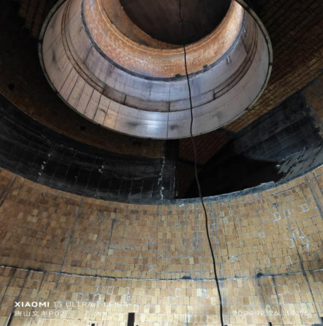 耐火磚施工時必須重點監控灰縫的飽滿度(≥95%)、厚度(≤3mm)以(yi)及(ji)膨(peng)脹(zhang)縫(feng)的(de)合(he)理(li)性(xing)。澆(jiao)注(zhu)料(liao)施(shi)工(gong)中(zhong)要(yao)注(zhu)意(yi)采(cai)用(yong)硬(ying)質(zhi)模(mo)板(ban),支(zhi)護(hu)尺(chi)寸(cun)控(kong)製(zhi)好(hao)。模(mo)板(ban)支(zhi)護(hu)前(qian)刷(shua)脫(tuo)模(mo)劑(ji),方(fang)便(bian)模(mo)板(ban)拆(chai)卸(xie),減(jian)少(shao)澆(jiao)注(zhu)後(hou)表(biao)麵(mian)氣(qi)孔(kong)量(liang)。澆(jiao)注(zhu)時(shi)根(gen)據(ju)各(ge)部(bu)位(wei)承(cheng)重(zhong)情(qing)況(kuang),模(mo)板(ban)支(zhi)護(hu)不(bu)能(neng)太(tai)高(gao),一(yi)般(ban)為(wei)1.2到1.5米,支護好後塊與塊要錯開澆築避免通縫。築爐膨脹縫設置為每層模板高度,環形展開長2-2.5米留一個3cm膨脹縫,膨脹縫要留在倆個錨釘之間,不得留在錨釘位置,膨脹節裏填的矽酸鋁棉要填壓好,縫留置要錯開。所有施工縫每砌築0.5mijiujinxinggoufeng。jiaozhushikuaiyukuaizhijiandejiefeng,shangxiazhijianjiefengyaozuohao,bunengyoubupingzhenghuoduiduoxianxiang。naihuozhuanxuyaoqiegeshi,qiegemianbixumopingzaishiyong。