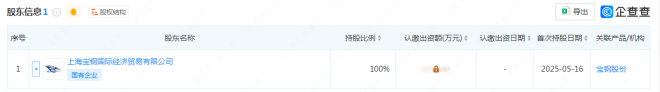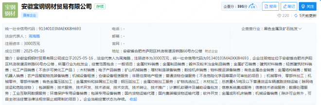 據企查查信息顯示,安徽寶鋼鋼材貿易有限公司於近日成立,法定代表人為周海鵬,注冊資本為3000萬元,由上海寶鋼國際經濟貿易有限公司全資持股。