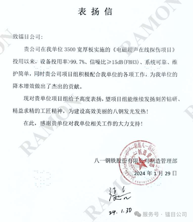 作為全球首套適配超寬軋機的“探傷之王”,其用技術實力、亮眼成績徹底征服客戶,同時也向行業傳遞了一個事實:要探傷,選鐳目。