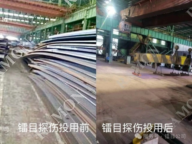 (鐳目電磁超聲中厚板智能探傷係統投用前後工廠現狀對比圖)