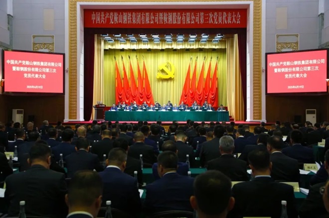 6月19日,中國共產黨鞍山鋼鐵集團有限公司暨鞍鋼股份有限公司第三次黨員代表大會在鞍鋼會展中心召開。鞍鋼集團黨委書記、董事長譚成旭出席會議並講話。