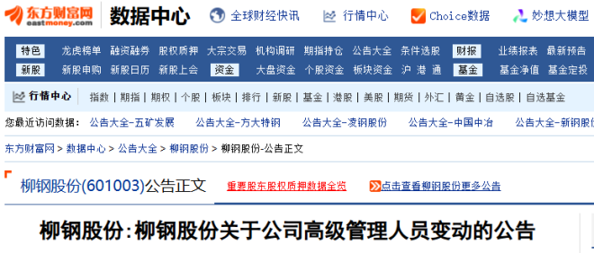 6月27日,柳鋼股份發布了《柳鋼股份關於公司高級管理人員變動的公告》。