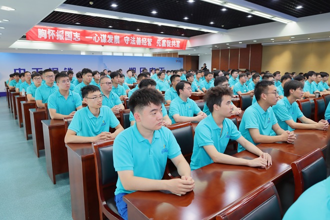 7月17日上午,在嘹亮的廠歌聲中,中天鋼鐵集團2025屆簽約大學生訓練營開班典禮在中天鋼鐵集團行政大樓舉行。中天鋼鐵集團及公司領導高一平、龔逸山,與150餘名懷揣夢想的應屆畢業生齊聚一堂,共同見證新一屆中天青年揚帆起航。中天鋼鐵集團部室、下屬公司處室、分廠相關負責人參加活動。