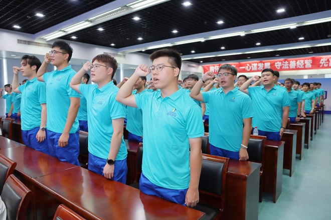 前期,訓練營通過民主選舉產生了13人的班委團隊,將以積分製管理班級。現場,班長蔡雲婷帶領全體新學員共同宣誓,將聚焦“紀律、成長、共贏”三個關鍵詞,以“團結可以戰勝一切”的中天精神為指引,盡快完成角色轉變,攜手中天共創輝煌。