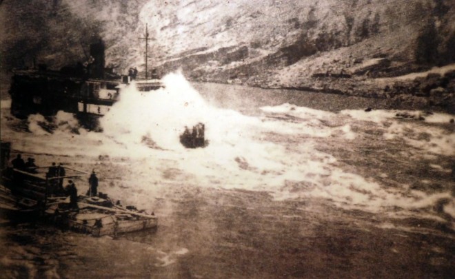 運載工廠器材的小船在川江上艱難跋涉