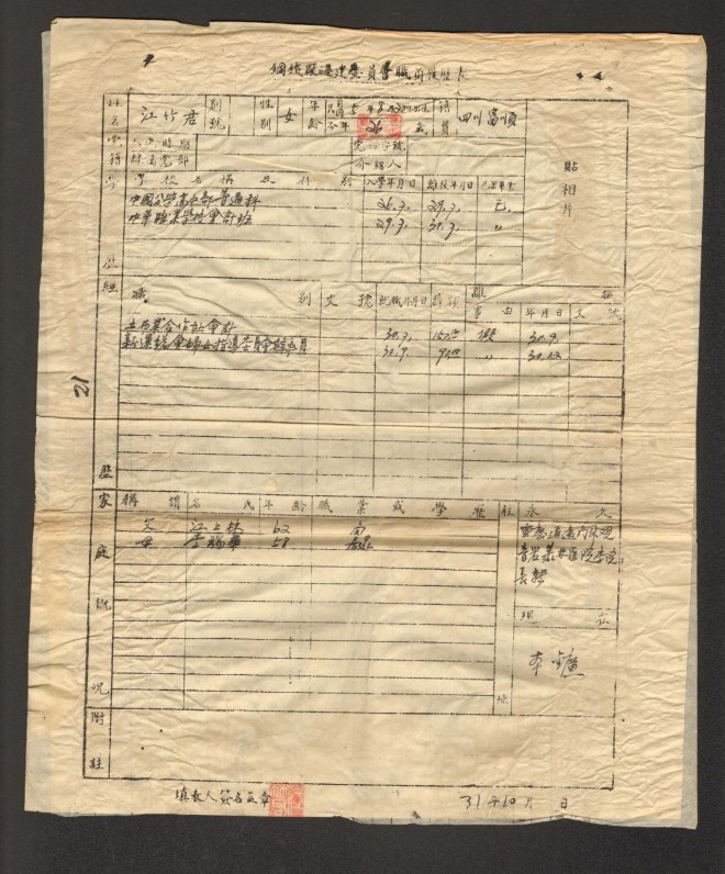 江竹筠及其履曆表