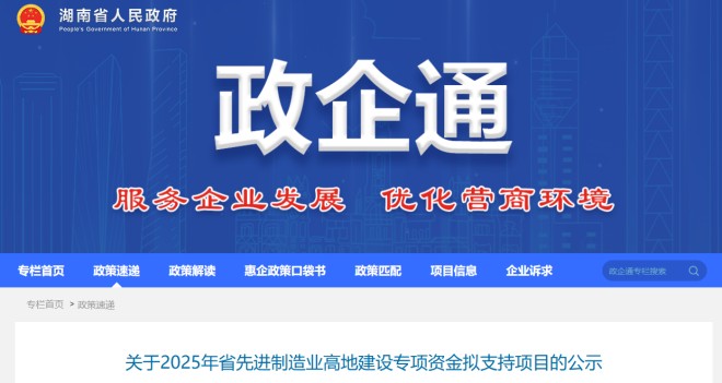 近日,湖南省人民政府網站發布了《關於2025年省先進製造業高地建設專項資金擬支持項目的公示》(以下簡稱《公示》)。