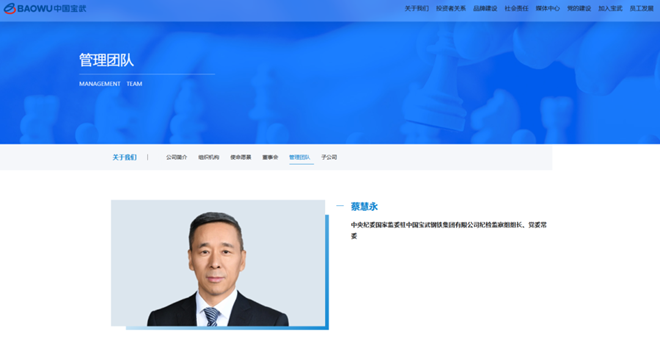 從中國寶武官網獲悉,蔡慧永已任中央紀委國家監委駐中國寶武鋼鐵集團有限公司紀檢監察組組長、中國寶武鋼鐵集團有限公司黨委常委。
