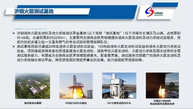 火箭動力測試板塊中,濟鋼液體火箭發動機及動力係統測試平台基地占地麵積168畝,已建成20噸級、100噸級發動機試驗台及動力係統試驗台,及相關配套設施,可全麵提供液氧煤油、液氧甲烷發動機及動力係統全流程測試服務。