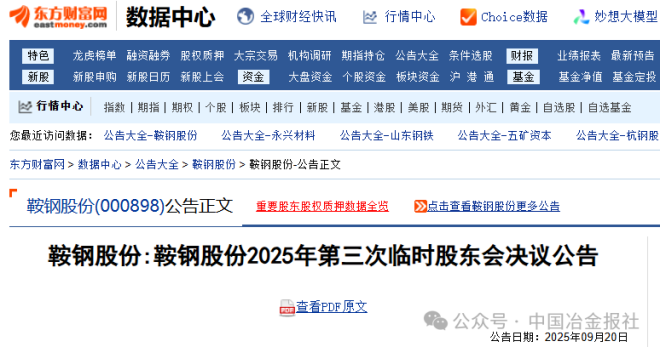 9月20日,鞍鋼股份發布了《鞍鋼股份2025年第三次臨時股東會決議公告》(以下簡稱《公告》)。