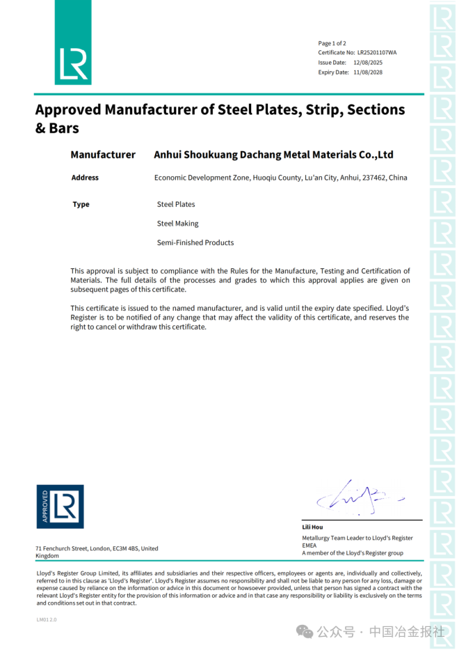 本(ben)次(ci)船(chuan)板(ban)成(cheng)功(gong)通(tong)過(guo)認(ren)證(zheng),標(biao)誌(zhi)著(zhe)公(gong)司(si)品(pin)種(zhong)鋼(gang)開(kai)發(fa)工(gong)作(zuo)取(qu)得(de)了(le)階(jie)段(duan)性(xing)重(zhong)大(da)成(cheng)果(guo),為(wei)推(tui)進(jin)產(chan)品(pin)結(jie)構(gou)優(you)化(hua)升(sheng)級(ji)樹(shu)立(li)了(le)全(quan)新(xin)起(qi)點(dian)。這(zhe)一(yi)戰(zhan)略(lve)落(luo)地(di)的(de)生(sheng)動(dong)實(shi)踐(jian)不(bu)僅(jin)驗(yan)證(zheng)了(le)公(gong)司(si)在(zai)高(gao)端(duan)鋼(gang)材(cai)研(yan)發(fa)領(ling)域(yu)的(de)技(ji)術(shu)實(shi)力(li)與(yu)創(chuang)新(xin)能(neng)力(li),更(geng)向(xiang)市(shi)場(chang)傳(chuan)遞(di)出(chu)公(gong)司(si)轉(zhuan)型(xing)升(sheng)級(ji)的(de)堅(jian)定(ding)決(jue)心(xin)。