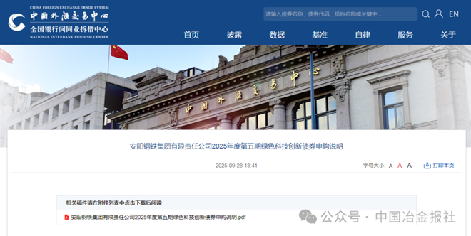 9月27日消息,安陽鋼鐵集團有限責任公司近日披露2025年度第五期綠色科技創新債券發行相關文件。