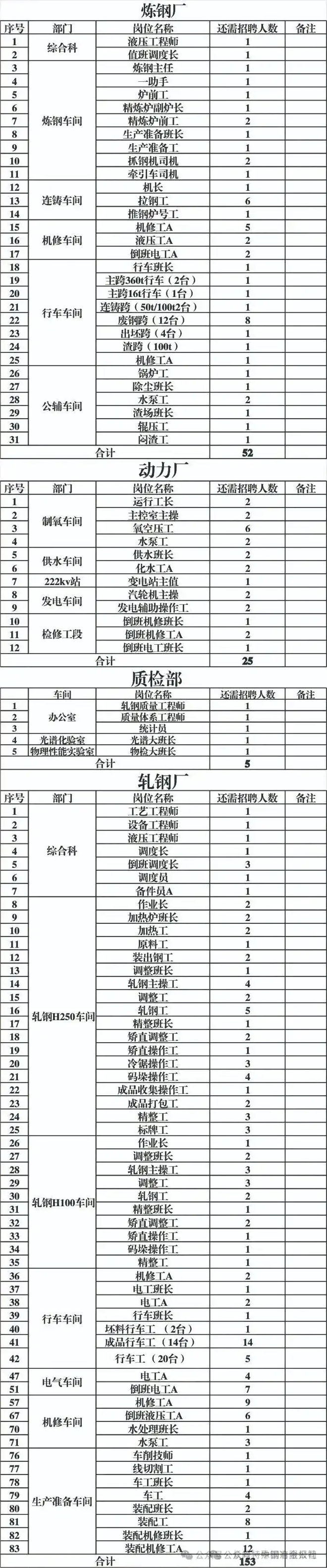 遵義長嶺特鋼項目建設取得重大進展,這座總投資60億元、占地1421畝的現代化特鋼基地即將正式投產。為滿足生產運營需要,公司10月8日啟動大規模招聘,麵向煉鋼廠、動力廠、質檢部、軋鋼廠四個部門計劃招聘235人,為西南地區特鋼產業發展儲備人才力量。