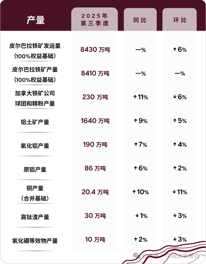 10月14日,力拓公布2025年第三季度生產業績報告。