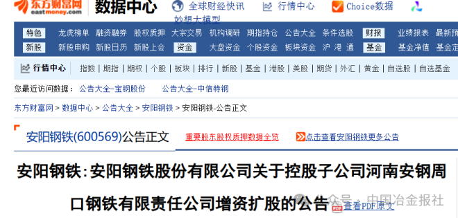 10月20日,安陽鋼鐵股份有限公司(以下簡稱公司)發布公告,控股子公司河南安鋼周口鋼鐵有限責任公司(以下簡稱周口公司)為滿足周口公司發展需要,優化財務結構,擬通過產權交易機構公開征集投資方,以增資擴股方式增加注冊資金總額,增資金額不超過10億元。公司擬放棄本次增資優先認購權。增資完成後,公司將繼續作為周口公司控股股東,對周口公司擁有實際控製權。