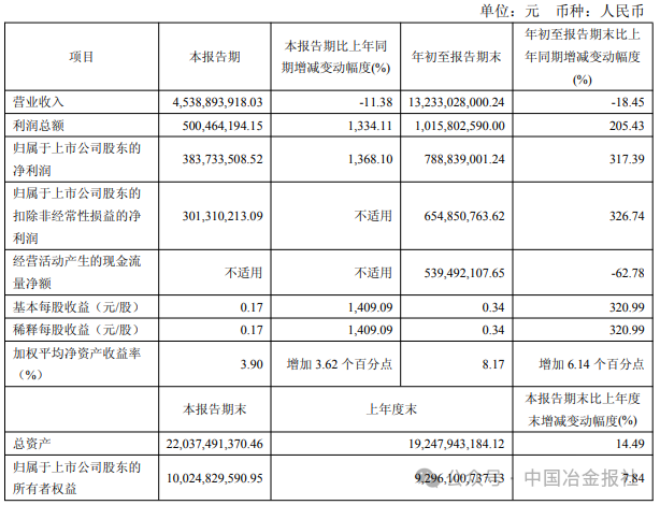 其中,第三季度單季實現營業收入45.39億元,歸屬於上市公司股東的淨利潤3.84億元,同比增長1368.10%,環比增長147.94%。報告期內,公司經營活動現金流保持健康水平,整體盈利能力與資金管理能力表現穩定,為完成全年業績目標提供了有力支撐。