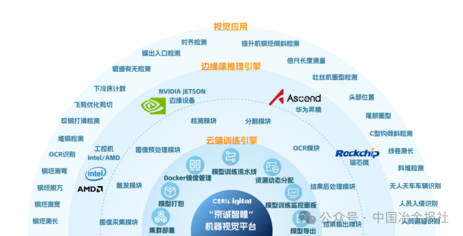 在此背景下,中冶京誠數字科技(北京)有限公司(以下簡稱“中冶京誠數科公司”)依托多年在工業現場的深度實踐與技術沉澱,曆經多個典型應用場景的迭代優化,成功將實踐經驗轉化為核心技術能力,全新升級推出“京誠智瞳”機器視覺產品。該產品以自主研發AI中台為底座,集AI模型開發、模型訓練與邊緣AI視覺終端於一體,不僅為企業數字化轉型注入強勁動力,更以“AI+視覺”的創新模式,為“十五五”規劃中智能製造目標的實現提供了可落地、可複製的解決方案,為構築工業智能時代的視覺中樞奠定堅實基礎。