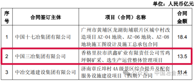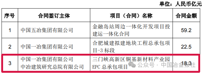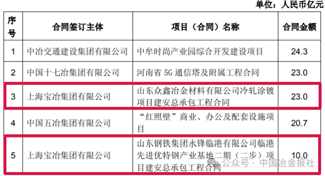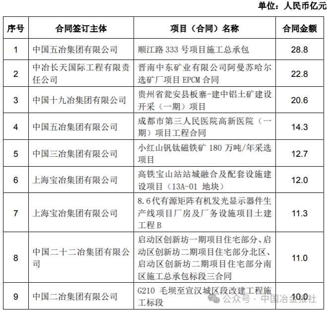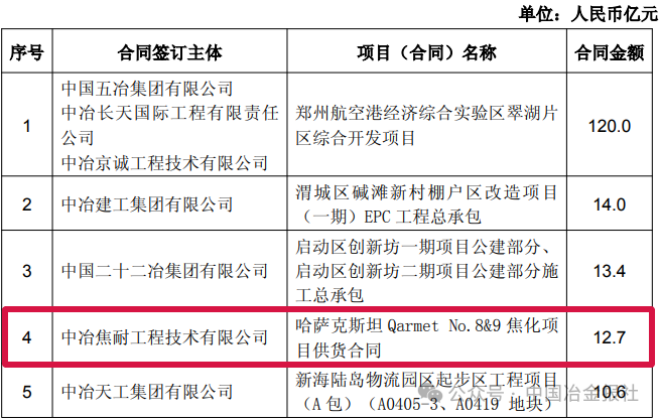 截至4月8日,中國中冶部分新簽單筆合同額在人民幣10億元以上的重大工程承包項目如下: