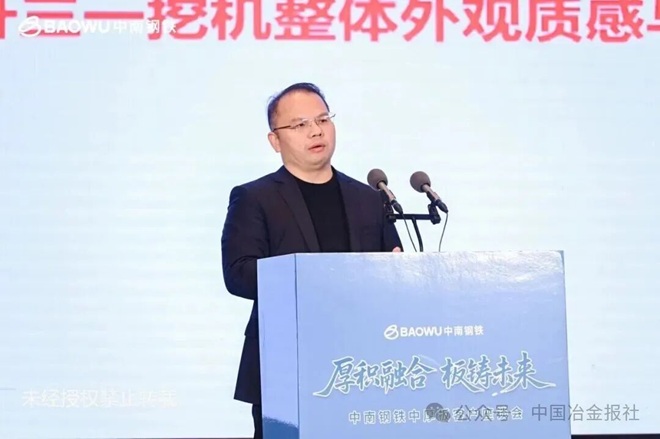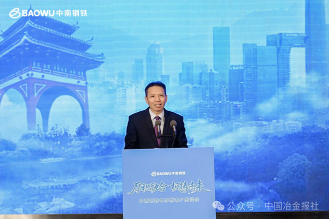 中南鋼鐵副總裁郭玉生圍繞“三基地協同發展”“客戶需求快速響應”“生態圈共建”等理念,作題為《厚積融合、板鑄未來》的主題報告,係統闡釋了中南鋼鐵推動產業鏈融合、實現共贏發展的核心路徑。