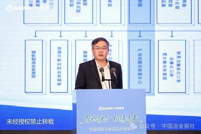 他強調,麵對當前鋼鐵行業長周期減量調結構的深刻變革,中南鋼鐵積極踐行中國寶武“三創四化五策略”發展理念,堅定不移走高端化、智能化、綠色化、高效化發展道路,持續推進產品結構優化與服務能力提升,成功應對了行業長周期減量調結構的挑戰。