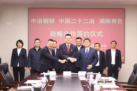 中冶銅鋅與中國二十二冶、湖南有色簽署戰略合作協議