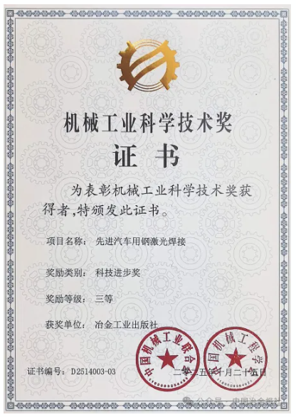 中國機械工業科學技術獎是根據《國家科學技術獎勵條例》和《社會力量設立科學技術獎管理辦法》deyouguanguiding,youzhongguojixiegongyelianhehuihezhongguojixiegongchengxuehuigongtongshelibingjingguojiakexuejishubupizhun,zaiguojiakejijianglizhuguanbumendengjidemianxiangquanguojixiexingyedezonghexingkejijiangxiang,zhizaibiaozhangzaijixiegongyekejigongzuozhongzuochutuchugongxiandedanweihegeren,gulijixiegongyeguangdakejigongzuozhedejijixinghechuangzaoxing,cujinjixiegongyekexuejishudefazhan,tigaowoguojixiegongyedezongheshiliheshuiping。2025年底,共評出541項,其中特等獎5項,一等獎49項,二等獎232項,三等獎255項。此次《先進汽車用鋼激光焊接》的獲獎,既是對圖書學術價值和生產力作用的權威肯定,也是對冶金工業出版社在專業科技出版領域深耕細作的高度認可。