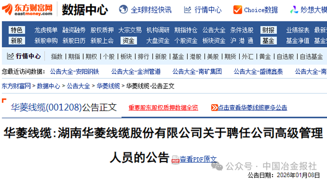 1月8日,華菱線纜發布了關於聘任公司高級管理人員的公告。