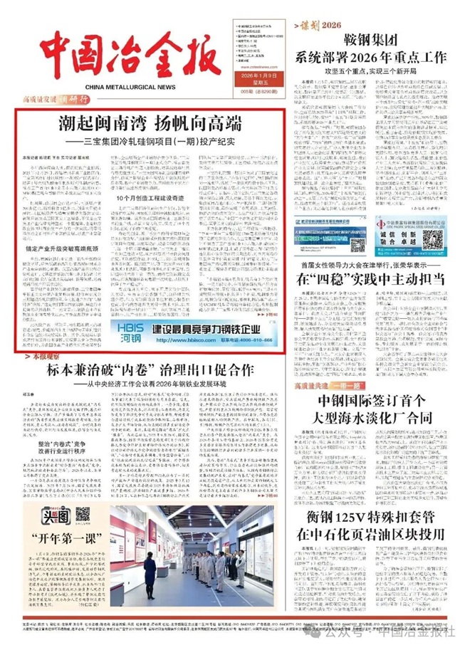 【1】 凡本網注明"來源:中國冶金報—中國鋼鐵新聞網"的所有作品,版權均屬於中國鋼鐵新聞網。媒體轉載、摘編本網所刊 作品時,需經書麵授權。轉載時需注明來源於《中國冶金報—中國鋼鐵新聞網》及作者姓名。違反上述聲明者,本網將追究其相關法律責任。