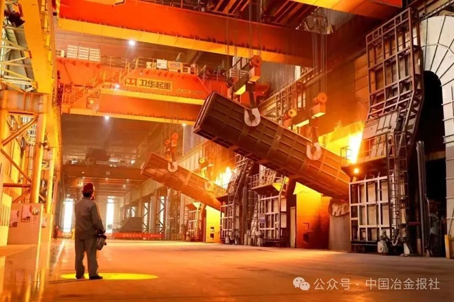 這是山鋼股份煉鋼廠煉鋼生產的日常一幕。2025年,這裏外購廢鋼約140萬噸,加上內部回收的下腳料,利用總量約200萬噸。這些廢鋼,意味著減少了礦石等原燃料消耗,同時也大幅降低了碳排放。在“雙碳”目標下,這種廢舊資源的開發利用,是行業的戰略必需項。